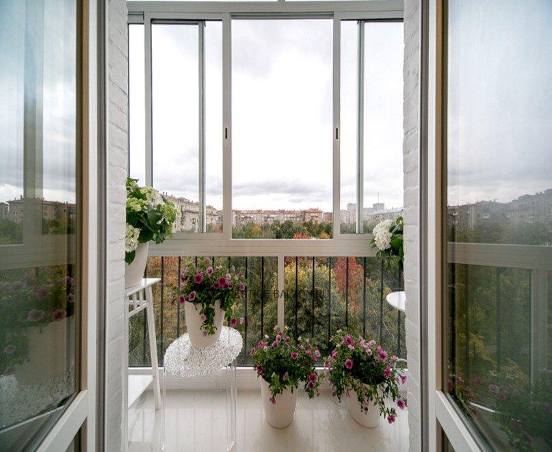 Панорамное остекление балкона алюминиевыми окнами с отделкой ограждений